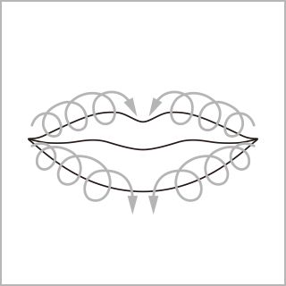 เริ่มจากมุมริมฝีปากด้านนอก เกลี่ยวนเข้าสู่ด้านใน(ดูภาพ)