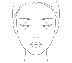 - เมื่อทาผลิตภัณฑ์ ให้กดจาก 1 และ 2 (ภาพ c และภาพล่าง) ด้วยปลายนิ้วกลางและนิ้วนางของมือทั้งสองข้าง